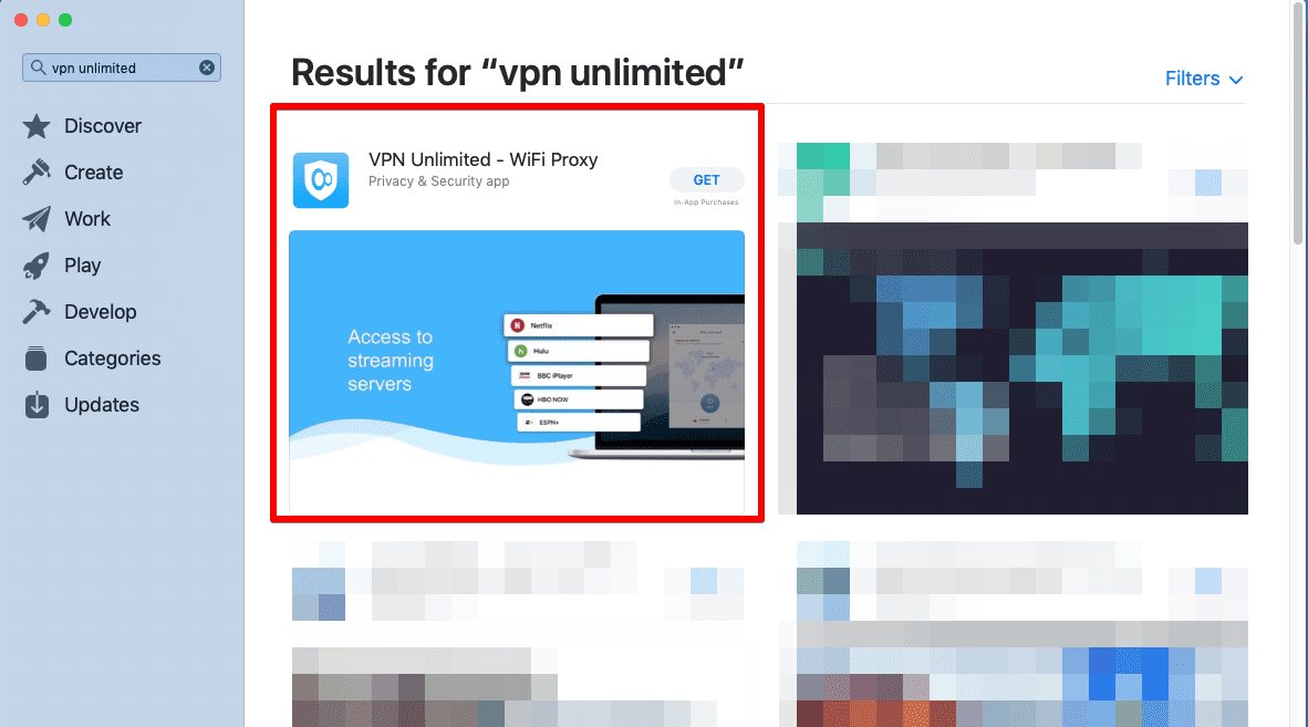 لتنزيل عميل VPN الموثوق به على جهاز macOS الخاص بك ، يرجى اتباع هذا الرابط أو فتح متجر التطبيقات واكتب VPN Unlimited في حقل البحث.
