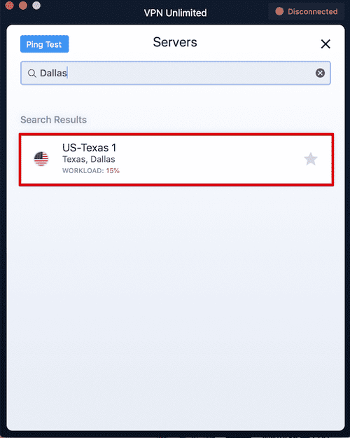 - Connect to the US-Texas 1 VPN server that appears in the search results.