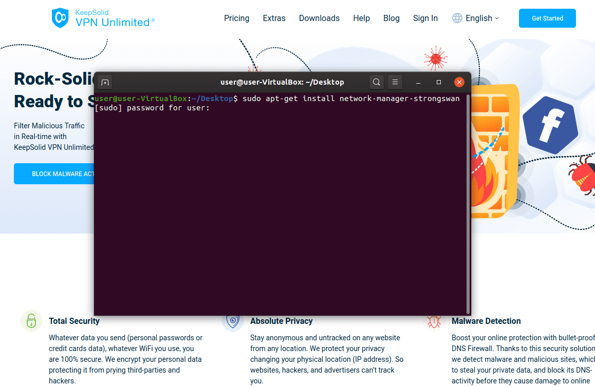 2. Ejecute el siguiente comando en la Terminal para instalar el plugin strongSwan NetworkManager: