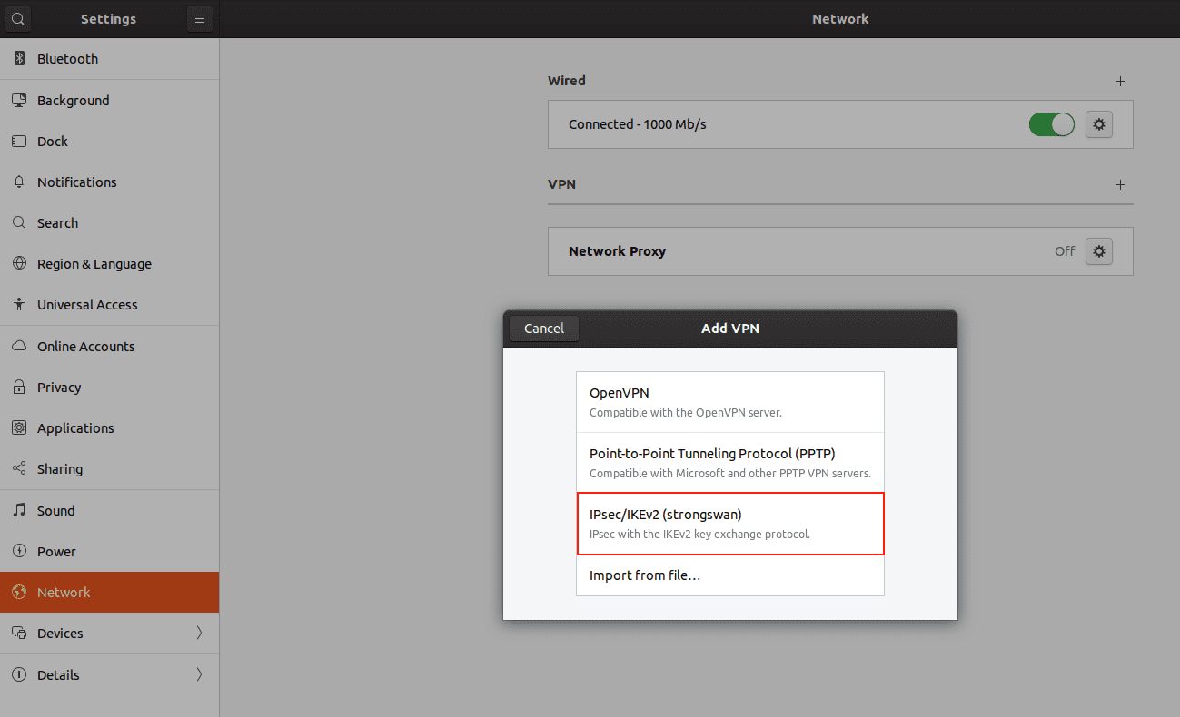 4. Seleccione IPSec / IKEv2 (strongswan).