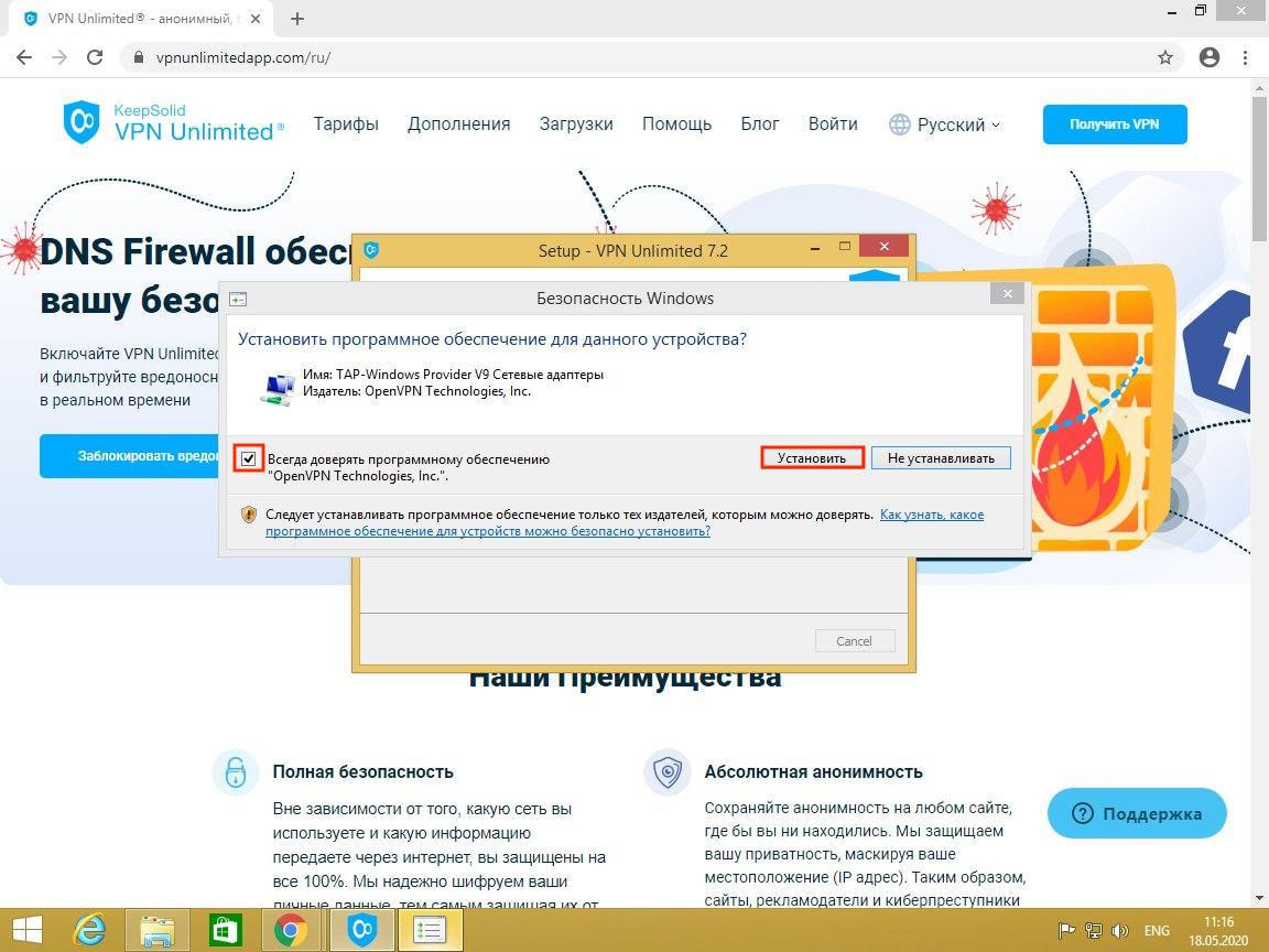 Чтобы продолжить установку VPN Unlimited, нажмите Yes.
