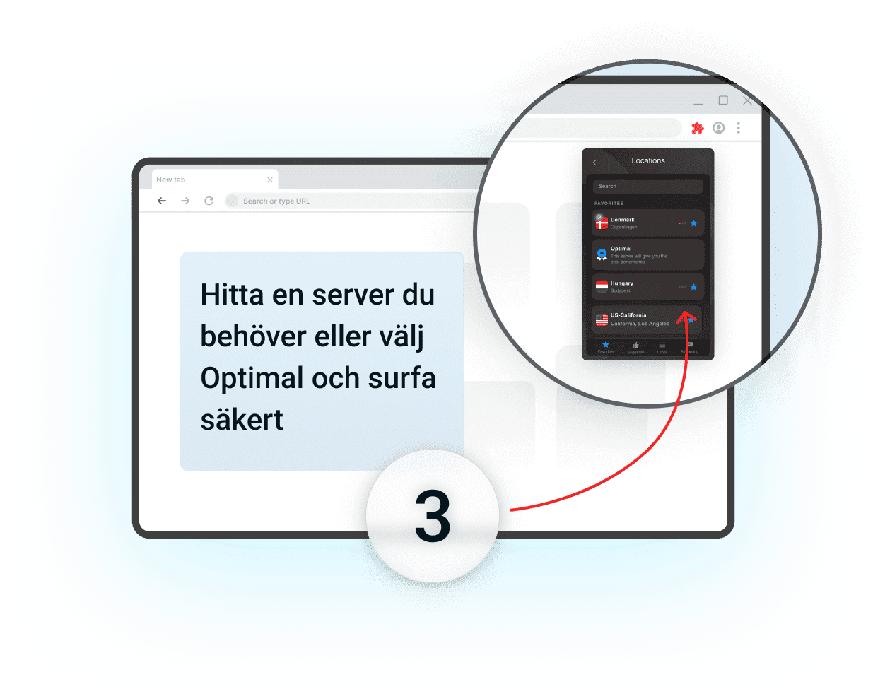 Vår förlängning gör att du kan ansluta till någon av 3000+ blixtsnabba servrar på mer än 80 platser runt om i världen. Vår perfekta infrastruktur gör att du kan kringgå geografiska begränsningar och njuta av allt innehåll var du än befinner dig.